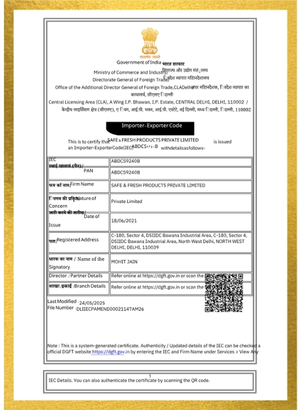 Safe & Fresh Products Private Limited